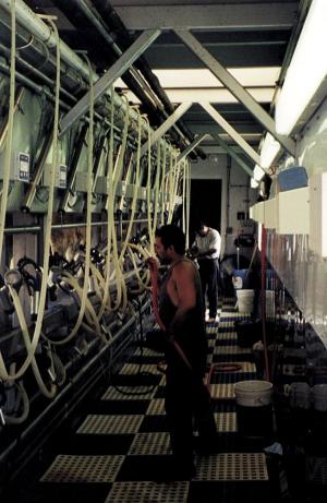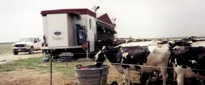 McAfee designed the parlor himself, and hired contractors to put together the trailer it's built on and the building itself. Design was important. It needed to be portable enough that he could move it with a tractor and self-contained so he could milk with automatic milkers and meet all the standards for Grade A milk.