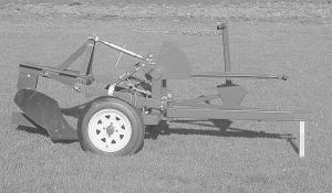 The cart is made mostly of 3-in. sq. steel tubing that's 3/16 in. thick. It has 4 by 12-in. standard 4-bolt trailer wheels. The tongue swings 18 in. in either direction to make hooking up easier. And it has a mechanical lift, so you don't need hydraulic or electric power to use it. A lever raises and lowers the 3-pt.