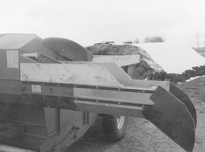 To solve the problem, he decided to build a spout extension. He ordered three feet of 11-in. left hand auger flighting from his feed wagon dealer. Schole then had three feet of trough extension built from 3/16-in. thick galvanized sheet metal to match the existing wagon spout. He had a removable coupler machined to fit the auger flighting. It can be unbolted when no longer needed. Then he mounted the new trough extension by bolting angle iron on the length of the trough.