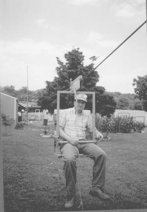 When the trolley reaches the other end, the operator at the 28-ft. pole releases a brake on the winch, dropping the end of the cable down to about 9 ft. off the ground. Then the trolley runs "downhill" back to its starting point.