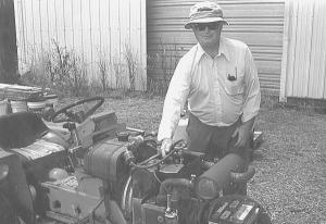 He installed an off-the-shelf electric fuel pump and needle valve on the tractor. He tapped a hole in the intake manifold to install the valve. To start the tractor, he turns the ignition key as he opens the needle valve to pump a shot of fuel into the manifold.
