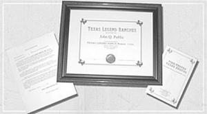 What buyers get is a certificate that entitles you to be known as a Texas rancher and a legal deed (unregistered) to a square inch of land in Jim Wells County about 100 miles south of San Antonio. Buyers can choose to register their deeds at the county courthouse, but it will cost them $15, and they will have to pay taxes on it. If unregistered, Aparacio pays the taxes and maintains the land.