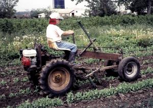 "It works well for shallow cultivation of small vegetables. For hot, sunny days, we also added an umbrella," he says.