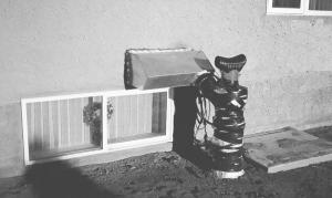 When he built his home, he buried two lengths of corrugated solid walled plastic pipes. They run 200 ft. straight in back of his house buried below the frost line. An insulated inlet pipe comes up above the ground at that point. A 1-hp. fan blows air through the pipe. When he installed the furnace, he piped these tubes to a manifold over the two air inlets.