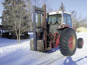 "It completely eliminates the need to lift logs," says Skretteberg, who uses the splitter on his International Harvester 1486 tractor. "I bought the big hydraulic cylinder at a surplus store. My total cost to build the splitter was about $1,200. It'll split a 30-in. dia. log with ease, and I've even used it to split logs up to 4 ft. in diameter by sliding the log part way in and splitting off one side, then repeating the process on the other sides until I can fit the entire log in. It works fast - in one hour I can split enough wood to heat my house for two full months.