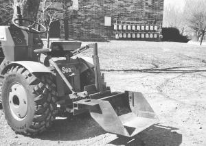 The bucket measures 16 in. wide, 13 in. long, and 8 1/2 in. deep and pins onto a home-built 3-pt. hitch. A lever extends in front of the tractor seat and is used to raise and lower the 3-pt. A spring-loaded trip lever built onto the bucket's mounting frame is used to dump the bucket. Bucket height can be adjusted by changing the position of a pin in the 3-pt.'s top link.