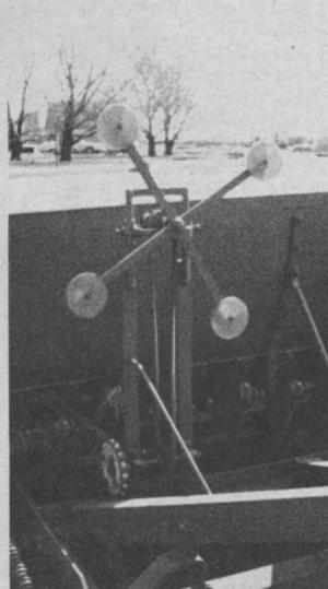 Drill Monitor DRILLS Drills (42C) 7-6-9 "Since I pull my seeder behind a packer, it's often difficult to tell if the feed shaft is turning, espcially in dusty conditions. So, I built a monitor that slowly revolves as the feed shaft turns, telling me the drill is seeding," explains Richard Anderson, Claremont, S. Dak.
