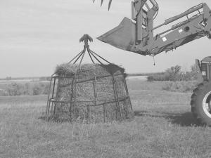 "When the feeder is empty, take your loader tractor and place your round bale where you want to feed next. Then just lift the feeder with a loader and set it over the bale," Kanten says.