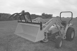"Add-A-Grapple" For Compact Tractor Buckets TRACTORS Loaders 29-6-40 "Our new add-on grapple fork can turn any compact tractor's loader bucket into an inexpensive grapple that works great for removing brush, debris, and other hard-to-handle material. It can quickly be removed, allowing you to use the bucket for other jobs," says Bill Reed, Precision Mfg., Sedalia, Mo.