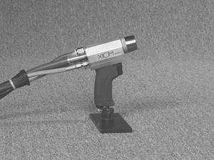 The new Xiom system weighs only 70 lbs. (not including gas cylinders) and it can be used anywhere compressed air is available. It works by mixing propane from a standard propane tank, oxygen from any size of cylinder, and compressed air to provide a perfect flame. This flame heats up the specially designed powdered plastic coatings to their melting point and ejects them onto the surface that needs to be plastic coated. The melted plastic chemically bonds to the surface and hardens and cures instantly. There is no dripping and no hanging parts to dry!