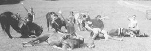 During the course, a student trains a horse (his own or one provided by Surrett) in the basics. The student learns how to train the horse in neck reining, backing-up, sliding stop, controlled and free lunging, bitting and flexing. Students also learn how to desensitize horses to gunfire, ATV's and other distractions. The horse is also taught to stop when a rider falls from a saddle and stand while being mounted or when hoofs are trimmed.