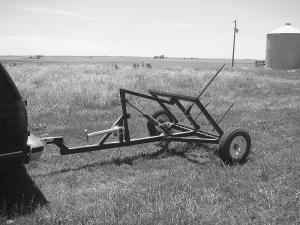 "Most of the bale's weight sets dead center on the axle, or just a little bit toward the front, so you're putting very little weight on the vehicle's bumper. I use my Chevy S-10 pickup to pull it with no problems. Everything that I used to build it I bought out of a Northern Equipment catalog. The frame, including the axle, is made from 3-in. sq. tubing with 1 1/4-in. axle stubs. I could have saved money by building cheaper, but I like to overbuild things."