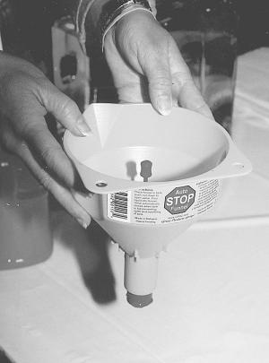 "Other funnels indicate when the tank is getting full, but this is the only one that I know of that stops the flow," says inventor Jennifer Gruber. "Otherwise, by the time you stop pouring it may be too late to avoid overfilling the tank and spilling onto the floor."