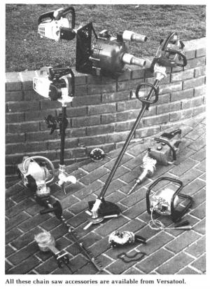 The attachment retails for about $30 and fits almost all standard chain saws. All attachments fit to the adaptor in seconds, and a rotating gear allows the tools to operate at any angle.