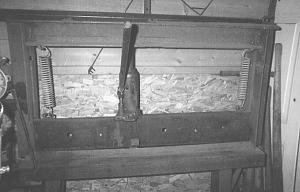 Gordon Fuller, Barriere, B.C.: "I built a metal brake that's shown here putting a 90 degree bend in a 1/4-in. thick, 1 1/2-in. wide strap of steel. For the brake's push bar, I used the 1 by 6-in. cutting edge off a Caterpillar blade, with a 1 1/2-in. angle iron held on with plates and bolts. It pushes into two angle irons that are welded onto the bottom beam to form a æV'. The springs from a pickup hood are used to pull and hold it open. I've used this brake to bend 1/4-in. thick, 8-in. wide steel with no problems. It works great."