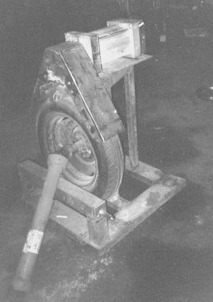 "It runs smooth and quiet. It's surprising how true the double V-belts run on the tire," says Heide. "I could've used a pulley instead of the tire, but a pulley big enough to do the job would have cost $240. I can also adjust tension on the belt by varying tire pressure.