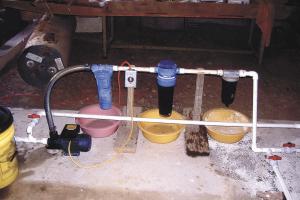 He paid $179 for the 12-volt pump. "I used a small pump because I didn't want to build up too much pressure and bypass the filters. The pump has a capacity of 330 gallons per hour or 5 1/2 gallons per minute. You could make a less expensive system using a $20 barrel pump.