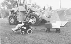 "I got hurt in 1990 when the transport wheels kicked out from underneath a Deere hay elevator. I wanted to keep helping on the vegetable fields a quarter mile from our house. But the power chairs I tried couldn't handle the terrain.