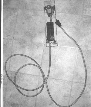 Don Catron, Box 357, Bridgeport, Neb. ph 308 262-0600: "I built this portable, foot-operated ęsafety power cord' and use it to operate my drill press. It's made from a limit switch off a Valley center pivot irrigation system, an electrical outlet box, and an extension cord. I bolted the limit switch onto one end of a small flat metal plate and the limit switch to the other end and then wired them together. The extension cord plugs into any wall outlet.