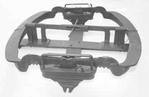 The trap was usually set near a hen house and covered with dirt or straw. When someone stepped on the trigger assembly, the springs closed the offset jaws, designed not to overly injure a leg. A heavy chain that secured the trap to a fence post or stake held the thief until the landowner returned.
