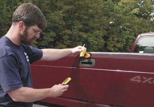 The color camera is magnetic so it's easy to put it in just the right spot. It sends the image to a handheld 2 1/2-in. LCD screen in the cab. The unit even reverses the image so you see as if you were looking at it. Pressing a button lets the viewer switch between reverse and normal images.