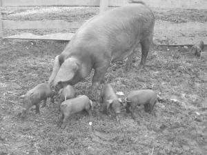 Large Blacks' coat color makes it tolerant of many sun-born illnesses, and its hardiness and grazing ability make it an efficient meat producer. The breed is also known for its mothering ability and milk capacity.