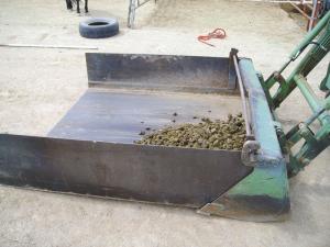 Pooper Scooper "Super-Sizes" Loader Bucket MANURE HANDLING Equipment 33-3-43 With 48 horse stalls to clean each day, Jim Evans needed a faster way to handle manure. His "pooper scooper" does the trick. The steel basket slides inside the loader bucket to super-size its carrying capacity. Evans and his wife operate a horse boarding and training facility and raise a herd of Boer goats. Time is at a premium.