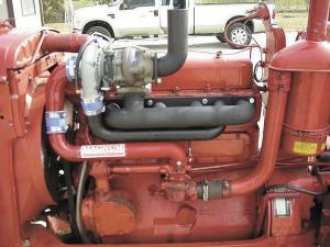 "We set the turbos we install at four to five pounds," he says. "On a 4-cylinder Farmall Super M, that'll give you 72 hp. If you increase the boost to 6, the horsepower goes to 80, and at 8 it goes to 90."