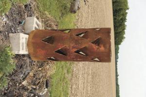 "The secret to the hot burn is cutting V-shaped tabs and bending them in toward the center of the pipe. What happens is that the trash is held up by the points of the V's until it's mostly burned up. The V-slots also give the trash plenty of air to burn like a volcano. That way it doesn't sit at the bottom of the burn barrel and smolder.