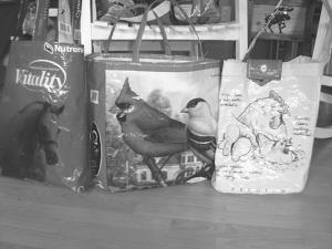 Tessier takes several bags into the grocery store when she shops and finds they are a great conversation piece. Her customers are generally rural people, pet owners or bird watchers. Horse bags are the most popular.