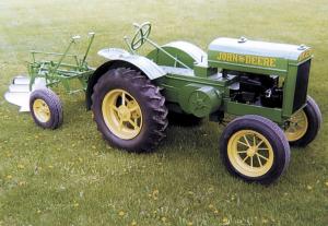 "I used to have a 1927 Deere D, which I later sold. So when I built my mini tractor I went mostly from memory," says Meredith who also built a 3-bottom moldboard plow to go with the replica.