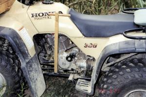 Hand Operated Lever For ATV's ATV'S ATV'S 34-2-41 My wife is the primary driver on our manually-operated Honda 300 ATV. Because of arthritis in her foot, she was unable to engage the shift pedal. I made a hand-operated lever by cutting a slit in the bottom of a 2 by 1-in. piece of oak. I used a hose clamp inserted through the slit to fasten it to the shift pedal. At the top of the oak piece, I drilled a hole to insert a dowel for a handle. (Bernard Paumier, 10335 Heimberger Rd., Baltimore, Ohio 43105 ph 740 862-8262)
