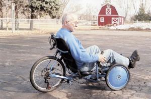 My friend Scott Nelson and I have built several one-of-a-kind 3-wheelers that are a lot of fun to ride. They're designed so all three wheels lean into turns for safety and speed. There's a 20-in. rear wheel and two 16-in. steering wheels on front.