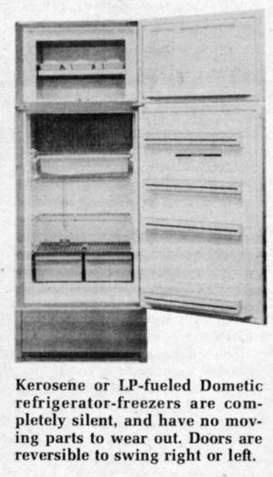 Dometic also has a line of kerosene and LP-gas chest-type freezers. Like the refrigerators, they compare favorably to conventional electric units, with all standard features and temperature controls.