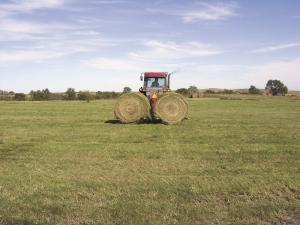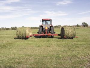 Gregg Cooper, CoBra IP, says, "It's ideal for smaller operators who use them to transport bales from field to farmstead. Other operators stack bales by the field."