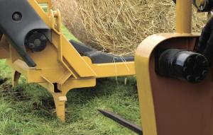 To feed a bale, you use the spears to load a bale onto the bale table and then just back the twin spears into the frame to engage the hydraulic drive.