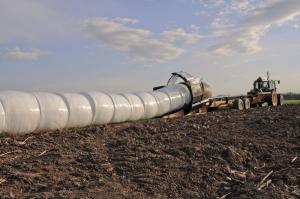 "Once the end capped bale has been wrapped, the operator reloads the wrapper on the wagon and moves to the next site," says Horst. "Only one tractor is needed with no supplementary motor or tractor needed for the wrapper. Later the same wagon can be used to transport wrapped bales for feeding."