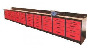 If you’ve got a tired worn out workbench in your shop or if you are building a new shop, take a look at the heavy-duty workbenches made by McTavish Steelworks. They have easy roll-out heavyweight supporting drawers. The drawers are equipped with large roller bearings and can support 200 lbs. each. The workbench’s counter top is 10 ga. steel and can easily support vises and other heavy tools. There is a layer of 1.5-in. thick wood underneath the steel table top that supports the top and makes it quieter to work on. The top drawer is 5 in. deep, the middle 2 drawers are 6 5/8 in. deep, and the bottom drawer is 9 in. deep. The workbench comes in black frame with either red or blue drawers. Some optional colors are also available. It’s available in 6, 8, 10 or 12 ft. lengths.