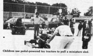 This challenge led Roger Haselhoff and several others in Aurelia, Iowa, to organize the National Association of Pedal Power Pulleys (NAPPP, or NA3P). They use modified pedalpowered toy tractors to pull a miniature sled.