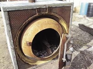 “You can use anything round with thick metal for the firebox. I built one stove I could crawl into and almost stand up. It had a 24-in. truck wheel for the door,” Luschen says. “I like them 4 ft. long, because you can burn pallets, which most people haul to landfills.”