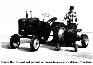 They cut an air conditioner freon tank in half to make the rounded hood and gas tank on the Massey Harris Pony.