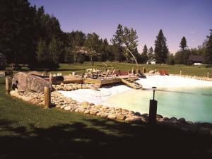 The “ocean” is a 110 by 90-ft. pond Leussink dug with a backhoe. It slopes gradually to about 14 ft. deep at the deepest end. Leussink regularly cleans the pool and adds chlorine and chemicals used in swimming pools as well as True Blue pond dye that gives the water its color and helps prevent sunlight from penetrating and growing algae.