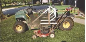 He Mounted Push Mower Alongside Deere Gator