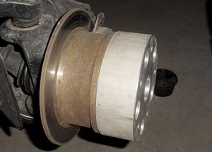 The 6-in. dia. solid aluminum spacers come with hardware to bolt to the wheel hub and are available in 2 or 4-in. widths. The wheel’s original bolts are used to bolt the wheel rim to the spacer.