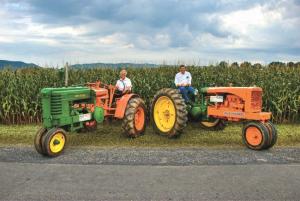 Paul Dotterer and Stephen Grieb split a 1939 Allis Chalmers WC and a 1949 Deere B. They then put the odd halves together to make what they call Half-Rite, Half-Rong tractors. Of course Dotterer, a retired Allis Chalmers dealer, and Grieb, a retired Deere dealer, disagree on which end is right and which is wrong. Grieb drives the one with the Allis front end, and Dotterer drives the one with the Deere on front.