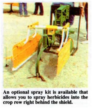 "The spray kit was developed primarily for cotton but can also be used on other crops," says Matteson. He says shields to fit Deere 885 and 886 cultivators will soon be available.