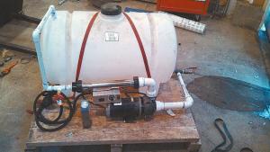 He paid $15 for the tank at a garage sale and another $30 for plumbing fittings and electrical supplies.