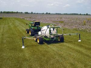After some trial and error, he installed a foam marker system to avoid overlaps. He also added a 5 gpm pump and Tee-Jet nozzle bodies that won’t drip when the pump is off. All the components are stainless steel. “I mounted halogen lights on front and back of the tractor and also behind the sprayer so I can work at night when there’s less wind,” says Miller.