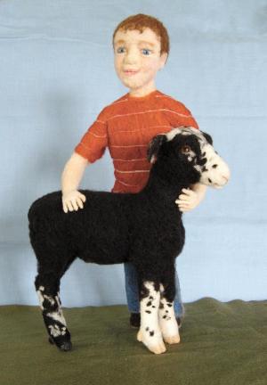 Artist Rhonda McClure explains that she makes her sculptures with needle felting, an art form she’s been perfecting for several years. She and her husband, Don, have a 90-ewe flock and process the wool themselves.