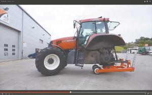 Our British correspondent Andy Sewell recently spotted a new-style tractor jack from an Irish company. The new jack is designed to make it easier to service rear brakes which, he says, go bad too often because so much equipment is trailered on narrow roads. And the trailers often either have poor brakes, or none at all. So the tractors do all the work.